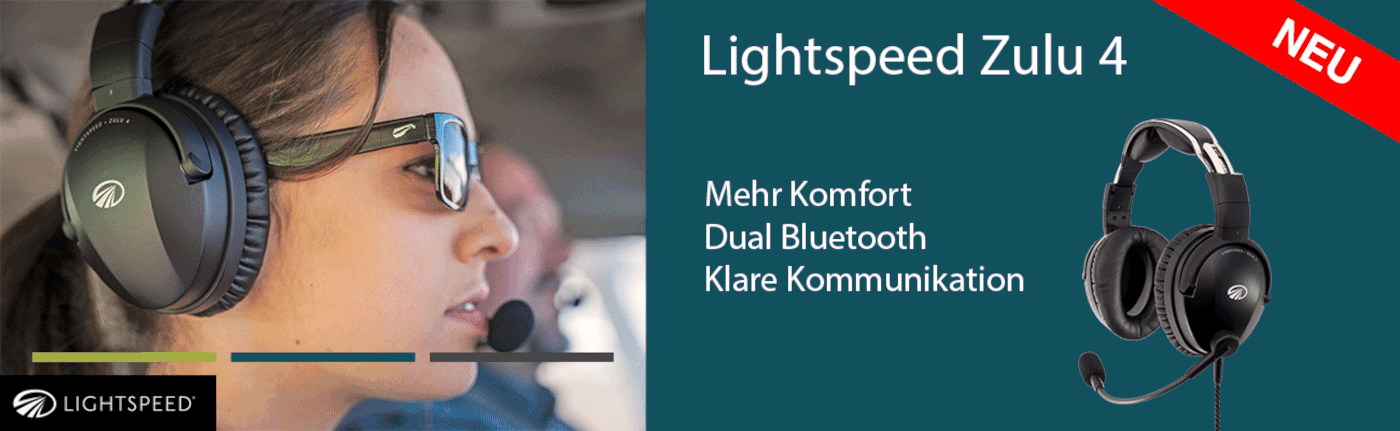 Die Zulu-Serie von Lightspeed hat sich als Spitzenreiter unter den Premium-ANR-Headsets etabliert – dank herausragendem Tragekomfort und preisgekrönter aktiver Geräuschunterdrückung (ANR), die über ein breites Spektrum tieffrequenter Störgeräusche konstant höchste Leistung liefert.Mit dem Zulu 4 setzt Lightspeed diesen Erfolg fort und bietet noch mehr Komfort, noch klarere Kommunikation und noch größere Flexibilität.Mehr KomfortDie neuen FrameFit™-Ohrpolster sind ein echter Durchbruch für Piloten, die Brillen, Kappen oder Sonnenbrillen tragen. Der speziell geformte Schaum sorgt für eine bessere Abdichtung um das Kopfzubehör, reduziert Druckstellen, steigert die Leistung und bietet unvergleichlichen Komfort – egal, was man trägt.Die großzügige Ohrmuschel der Zulu-Serie umschließt das gesamte Ohr und verhindert dadurch Schmerzen durch Druck an den Ohrkanten. Der schlanke Edelstahl-Kopfbügel folgt der Kopfform und verteilt Gewicht sowie seitlichen Druck besonders angenehm.Mehr KlarheitDie optimierte Audioübertragung reduziert Hintergrundgeräusche bei Bluetooth-Kommunikation um bis zu 90 %. Ob beim Telefonieren aus der Luft oder im Funkkontakt am Boden – die Stimme bleibt klar und deutlich.Das Dual Aperture Disc™-Mikrofon unterstützt die Geräuschunterdrückung für noch verständlichere Kommunikation. Mit der individuell einstellbaren Mikrofonverstärkung können laute und leise Stimmen in einer Mehr-Headset-Umgebung ausgeglichen werden.Die exklusive **Front Row Center™-Technologie (FRC) liefert glasklaren, detailreichen Stereoklang und außergewöhnliche Musikqualität.Mehr FlexibilitätPraktische Verbesserungen machen das Zulu 4 anpassbarer als je zuvor.Dual Bluetooth®: Zwei Geräte gleichzeitig verbinden – für Anrufe, Musik-Streaming oder App-Benachrichtigungen.Optimierte Ergonomie: Ein 10 % längerer Mikrofonarm und ein längeres Oberkabel erleichtern die individuelle Anpassung.Flexible Stromversorgung: Panel-Stromversorgung mit AA-Batterie-Backup hält zuverlässig verbunden.Zulu 4 ist zudem kompatibel mit der kostenlosen Lightspeed Aviation App für iPad und iPhone – ideal für Cockpit-Aufnahmen, Wiedergaben, Notizen und Nachbesprechungen.Wichtige Funktionen im ÜberblickLightspeed Aviation App– Bluetooth-Verbindung für Aufzeichnungen, Wiedergaben, Diagramme und Archivierung von Flugdaten.Dual Bluetooth® – Zwei Geräte gleichzeitig koppeln für Telefonie, Musik und App-Alerts.Leichter Komfort – Mit nur 423 g (inkl. Polster und Mikrofonarm) und einem Edelstahlbügel für optimale Gewichtsverteilung.FrameFit™-Ohrpolster– Speziell geformter Schaum für Brillen- und Sonnenbrillenträger, großzügige Ohrmuschel für maximalen Komfort.Kristallklare Kommunikation** – KI-optimierte Audioübertragung, Dual Aperture Disc™-Mikrofon und anpassbare Mikrofonverstärkung.Robust und langlebig** – Edelstahl- und Magnesiumteile, Kevlar-verstärkte Kabel – gebaut für extreme Einsatzbedingungen.ComPriority™ – Senkt automatisch die Lautstärke externer Geräte bei Funkverkehr, mit sanfter Rückblendung der Musik.Überragende Geräuschunterdrückung (ANR)** – Exzellente Leistung bei tiefen Frequenzen, Magnesium-Ohrmuscheln blocken zusätzlich hohe Frequenzen.Auto Shutoff™– Schaltet das Headset automatisch ab, wenn es nicht genutzt wird, und spart so Batterien.LieferumfangZulu 4 ANR-HeadsetQuick Start Guide mit GarantieinformationenTragetasche2 × AA-BatterienKabelclip