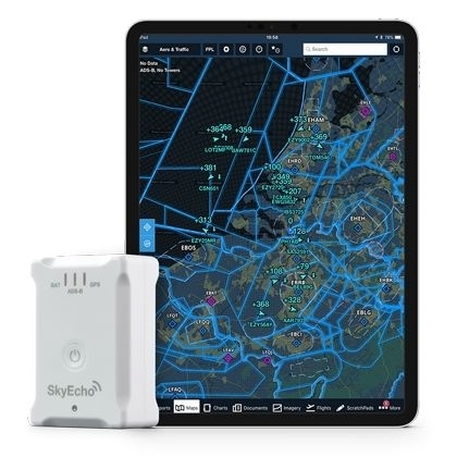 Der SkyEcho ist ein Dualband-ADS-B-Empfänger, der Positionen anderer mit ADS-B oder FLARM ausgestatteten Flugzeuge empfängt und zur Navigationssoftware überträgt.