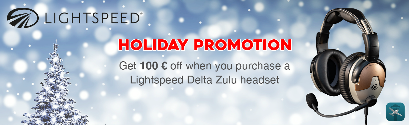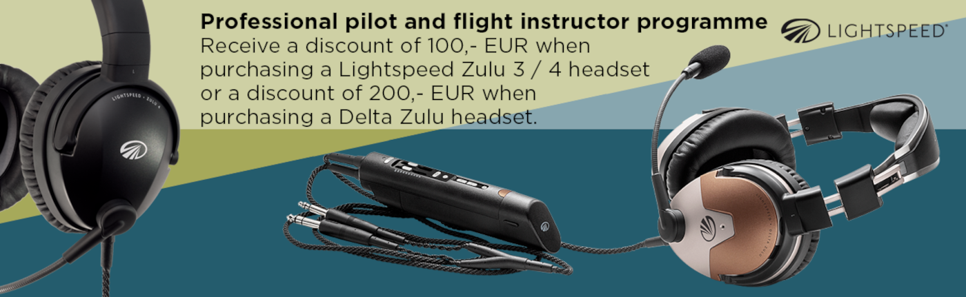 Lightspeed holiday promotion from November 6, 2025, to January 12, 2026.Save € 100 when you purchase a Lightspeed Delta Zulu headset.Cannot be combined with other promotions, such as the Lightspeed Professional Pilot Program.Lightspeed professional pilot and flight instructor programme.Receive a discount of 100,- EUR when purchasing a Lightspeed Zulu 3 headset or a discount of 200,- EUR when purchasing a Delta Zulu headset.Simply send us the following documents to info@friebe.aero:If you are a professional pilot, a copy of your valid licence and your commercial airline ID cardIf you are a flight instructor, a copy of your licence with valid instructor authorisationOrders paid by credit card or PayPal will be refunded immediately after order processing.A subsequent discount after order processing is not possible!The Lightspeed Delta Zulu is built for your mission. Lightspeed`s newest headset could save the lives of both pilots and passengers. It includes Lightspeed’s best ANR to date, with the superior comfort and durability you expect, while also introducing groundbreaking new technologies.LIFE SAVING – LIFE CHANGINGKanari® smart alert technology built right into the headset delivers audible warnings to you by measuring cabin carbon monoxide levels, helping to keep you and your passengers alert and safe. A built-in audio equalization system called HearingEQity® ensures crystal clear flight communication with your individual hearing profile created through an automated 12-frequency hearing test.PERSONALIZATIONThe Lightspeed App also allows you to check the CO sensor data, create your own hearing profile, record radio conversations, playback transmissions, and archive flight recordings for post-flight briefing and training. The Lightspeed Delta Zulu is also the first headset to adopt the UAC plug, allowing you to connect to other devices directly from the headset for charging, data communications, and auxiliary audio.FeaturesBluetooth – Bluetooth wireless technology with A2DP technology enables cell phone communications and stereo music streaming along with alerts from aviation apps.Low-profile comfort – Weighing just 14.9 ounces (including ear seals, head pad and mic boom), Delta Zulu has a low-profile, stainless-steel headband that follows the curve of the head for more comfortable distribution of weight and side pressure.High-performance fit – Delta Zulu’s tapered performance ear seals are designed to hug the curve of the jaw for a natural fit, increasing comfort and clarity while also providing a better seal around eyeglass or sunglass frames. Cup cavities allow the entire ear to fit comfortably inside.Durability and longevity – Made almost entirely of stainless steel and magnesium with durable cables built around a Kevlar core, Delta Zulu is designed to endure the harshest flying environments and last for years to come.Superior quiet – Delta Zulu delivers advanced active noise reduction (ANR) performance over a deep, broad range of low-frequency noise. The magnesium ear cups are superior at blocking out high-frequency noise.Clear comms – The Dual Aperture Disc microphone provides greater noise cancellation for clearer, more intelligible communications. Exclusive, user-adjustable mic gain helps balance loud and soft voices in a multi-headset environment.ComPriority – Never miss important radio communications with patented ComPriority, which automatically lowers the volume of any auxiliary device during radio or intercom transmissions. The soft mute feature gently eases music back in for a smooth listening transition.Auto Shutoff – Lightspeed’s proprietary Auto Shutoff feature saves battery life by automatically shutting down the headset power when not in use.Included accessories– Carrying case, single port wall charger, lithium-ion battery cartridge, AA battery cartridge, UAC to USB-A cable, a cord shirt clip, and a set of personalized icon chips to distinguish multiple headsets.30-day money-back guarantee – We know that every cockpit and pilot is different. That’s why we offer a 30-day money-back guarantee. If you are not completely satisfied with your purchase for any reason, return the product for a full and prompt refund.Available configurations – Dual GA, LEMO panel power, U-174. Others available by special order. Please contact Customer Support if your configuration is not listed.7-year limited warranty – The BEST in the aviation industry. Lightspeed stands by the quality of the Delta Zulu with a comprehensive 7-year warranty of materials and workmanship.