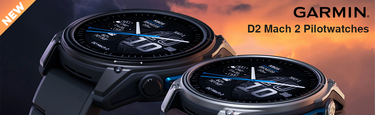 Garmin is pleased to announce the D2™ Mach 1 GPS Aviator Smartwatch with classic pilot watch styling and a bright AMOLED touchscreen display that offers advanced tools for flying - plus health and fitness features - to help pilots and aviation enthusiasts accelerate their adventures. With a battery life of up to 11 days, pilots can rely on the D2 Mach 1 around the clock to keep tabs on the weather, receive automatic alerts for changing conditions (when paired with a compatible smartphone), help navigate with the moving map and horizontal situation indicator (HSI) and so much more. Coupled with a full suite of health monitoring and activity tracking features, the D2 Mach 1 offers unmatched utility both in and out of the cockpit.Technical Specification Garmin D2 Mach 1:Measures - 47x47x14.5 mmDisplay - 33.02 mm in diameter, 416 x 416 pixels, colored, sunlight-visible, touchscreen AMOLEDMaterials - lens sapphire crystal / bezel titanium / case fiber-reinforced polymer with titanium rear coverGPS / GLONASS - yesWeight - 70 gBattery life - Smartwatch mode (up to 11 days), Fly mode (up to 24 hours), GPS mode (up to 32 hours), GPS & Music mode (up to 10 hours)3-axis compass with HSI (horizontal situation indicator)Touch and/or button lock, GPS coordinates, Audio prompts, Sleep monitoring (monitors total sleep and periods of movement or restful sleep)Auto CourseView updatesSeveral sport featuresAltimeter with adjustable baro settingMusic storage - up to 650 songsCalendar, Barometric altimeter, Sunrise/sunset timesConnectivity - Bluetooth®, ANT+®, Wi-Fi® technologiesSmartphone compatibility - iPhone®, Android