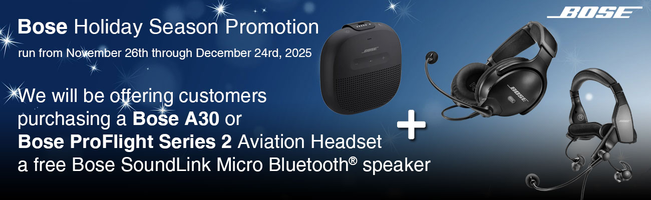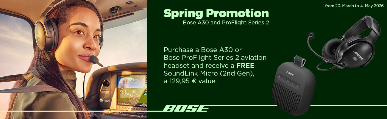 The Bose A30 Aviation Headset is best utilized where noise is pervasive, comfort is required and communication is critical. It’s the most comfortable, full-featured around-ear aviation headset Bose has ever created, and it’s the first-ever around-ear aviation headset with three modes of user selectable active noise cancellation. Each feature of the A30 was inspired by decades of Bose research and development and engineered to perform in high-intensity flight environments. Plus, its lightweight, comfortable design is FAA TSO and EASA E/TSO-C139a certified, proving its durability in tough conditions. Excellent noise reductionPriority switchingPerfect wearing comfortAdjustable microphoneAbout 45 hours of battery lifeCertified to FAA TSO and E/TSO-C139 standards.5-year manufacturer's warrantyMade in the USAScope of delivery: Headset bag, control module holder, 2 cable clips, 2 AA batteries