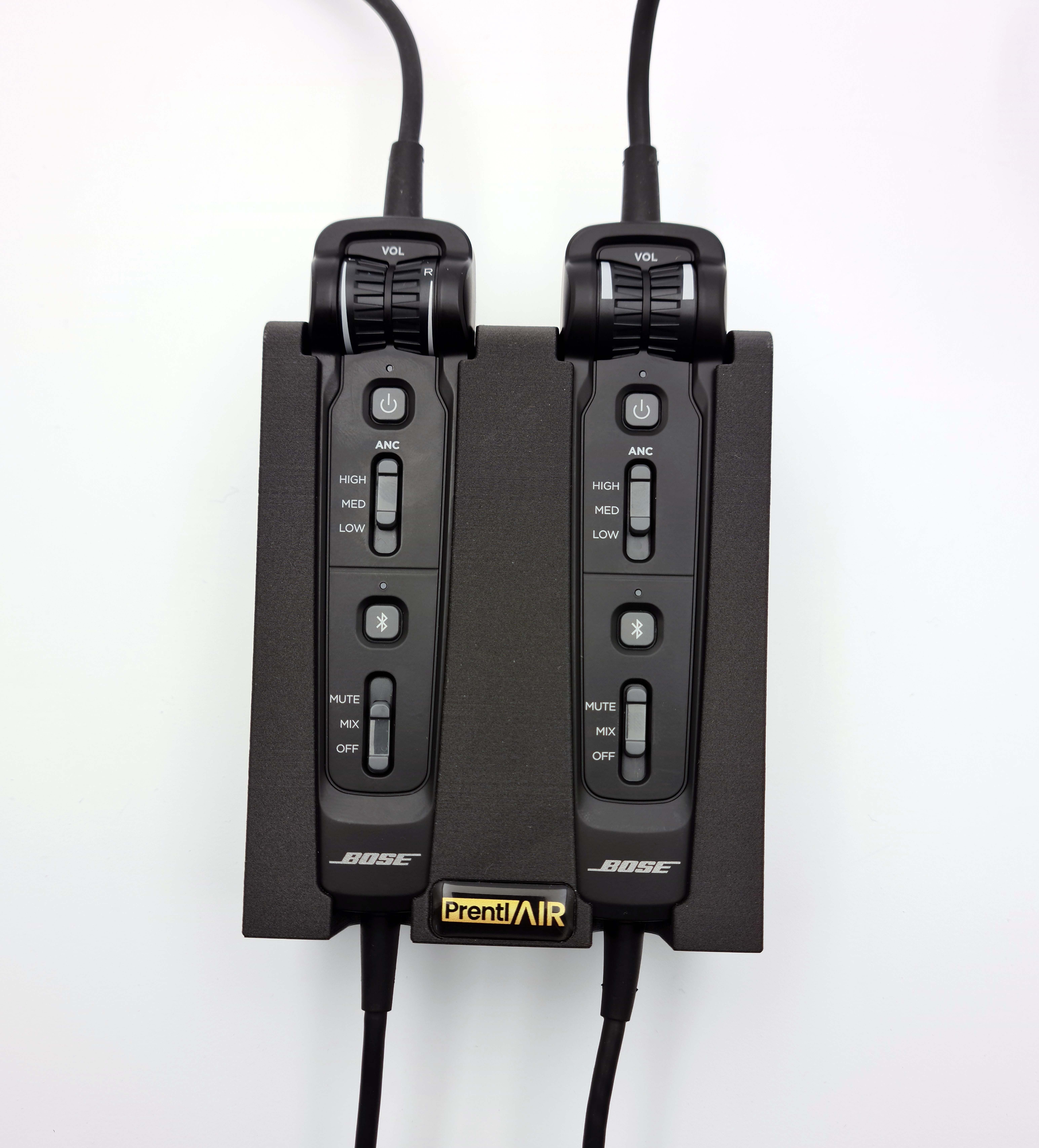 The double mount for Bose A20 control modules contributes to a tidy cockpit. It is manufactured using 3D printing technology. The mount can be attached with Velcro or double-sided adhesive tape. The mount engages completely and holds in any position. Delivery condition black and unpainted.