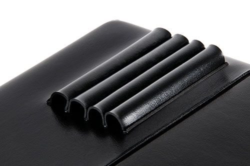 Lightweight, very sturdy black plastic writing board incl. spring clip for flight plan pad, ring eyelet for attaching a stopwatch as well as a ring mechanism with five transparent pockets on the left side.