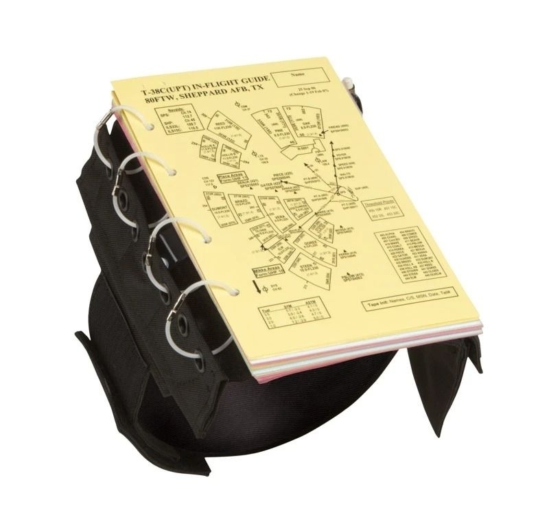 The preferred kneeboard of US Navy and Air Force pilots. High quality workmanship with a fold-side part, side pocket, three pen holders, lockable bag for multipurpose rings, removable plastic clipboard with spring clip. Lateral perforation with sturdy metal grommets for the optional fitting of clear plastic sheets for approach charts, checklists, etc. Elastic strap with extra wide Velcro closeing and additional flexible strip at the top. Due to the small size ideal for helicopter, ultralight and glider pilots. Color Black. Size (folded) 12,5 x 20,5 cm, overall size (unfolded) 20,5 x 28 cm. Delivery without rings and pens.