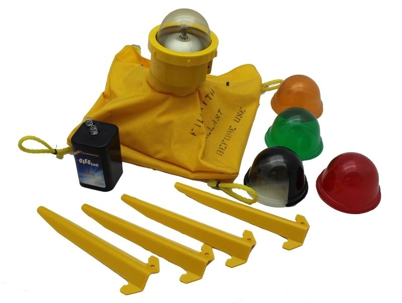 Zur Notbefeuerung von Landebahnen, UL-Plätzen, temporären Heliports, Hindernissen. Einstellbar auf Dauerlicht oder Blinkbetrieb. Gehäuse aus schlagfestem Kunststoff, Ballastbeutel mit vier Befestigungsschlaufen.