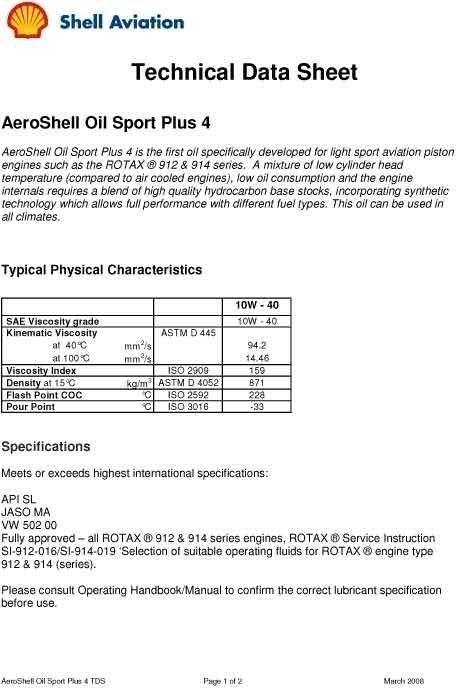 Bisher wurden ausschließlich Motorrad und KFZ Schmierstoffe eingesetzt, unter anderem auch Shell Advance und Shell Motorenöle - diese Öle besitzen unter anderem eine ROTAX Freigabe, das Problem bei diesen Ölen (und auch bei nicht Shell Ölen), ist jedoch das die Formulation der Öle jederzeit verändert werden kann, was eine gleich bleibende Qualität und Zusammensetzung der Additive der Öle beeinträchtigt. Daher hat sich Shell Aviation in Zusammenarbeit mit ROTAX entschlossen, ein speziell nur auf die Anwendungen für ROTAX Motoren abgestimmtes Öl (das AeroShell Öl Sport Plus 4) zu entwickeln.