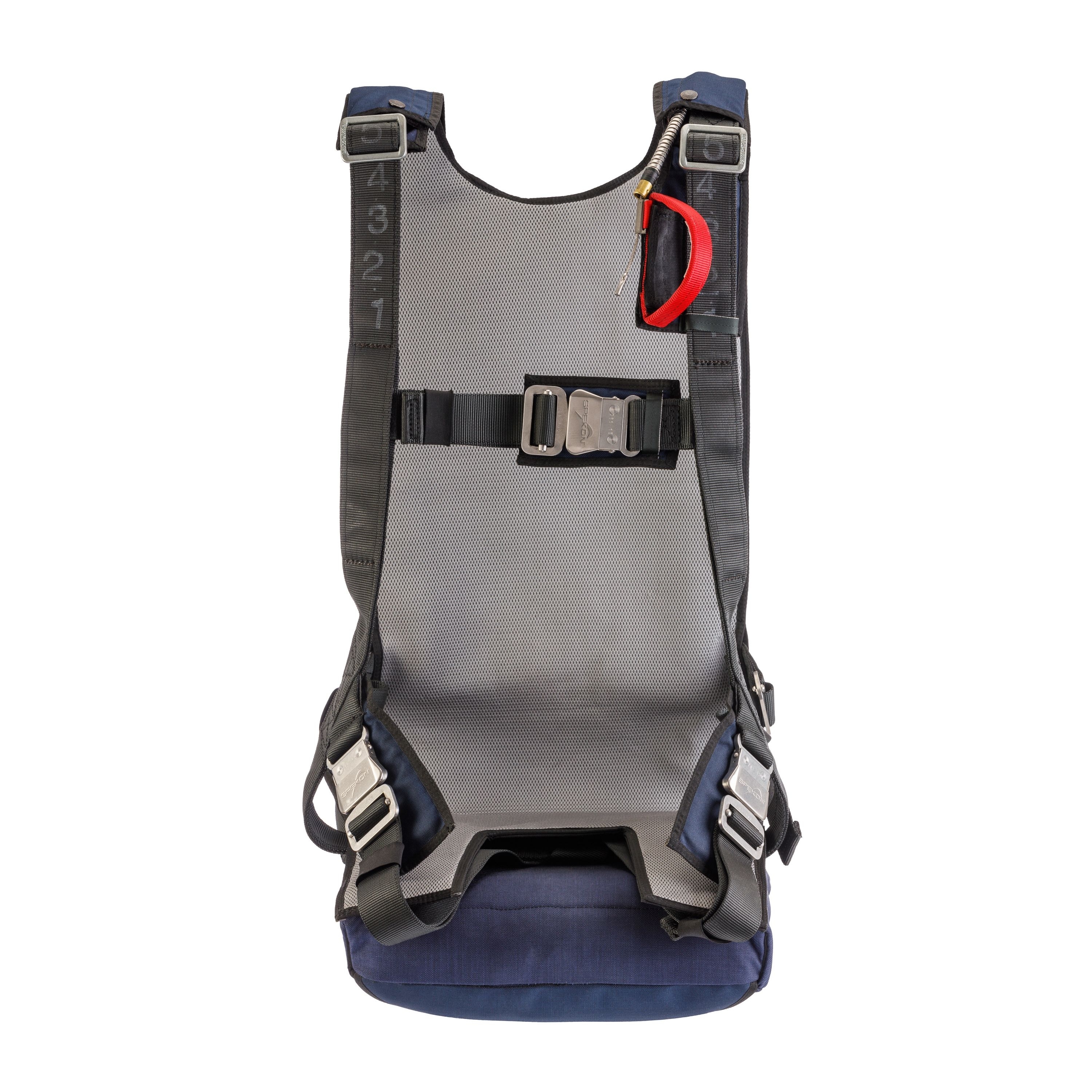 Neuer superflacher Sitzfallschirm mit langjährig erprobter Fallschirmkappe RE-5L. Optimale Sicherheit gegen unbeabsichtigte Öffnung, hohe Öffnungsintensität und kurze Entfaltungszeiten, Kappe bedingt steuerbar, atmungsaktives Rückenpolster, beidseitig einhängbare Aufzugsleine. Schirmfarbe marineblau. Im ETSO-Zulassungsverfahren.