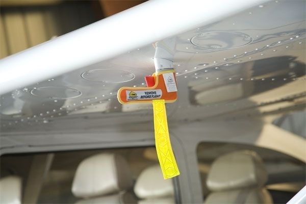 wetterbeständiger, gelb reflektierender Staurohrschutz.