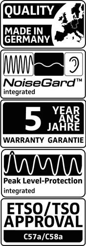 Extrem leichtes Aktivheadset mit geräuschkompensierendem Elektretmikrofon auf flexiblem Mikrofonarm, rechts oder links zu tragen. Mikrofonarm leicht austauschbar. Erstklassiger Tragekomfort durch den patentierten automatischen Spreizkopfbügel. Schwenkbares Hörersystem zum einseitigen Hören. Lautstärkespitzen über 110 dB werden durch Peak Level-Protection eliminiert. Aktive NoiseGard ™ Geräuschdämpfung. Stromversorgung über externes Batteriegehäuse mit zwei 1,5 V Mignonzellen, separate Lautstärkeregler, Gewicht ca. 210 g. Luftfahrt Standardstecker. Lieferung mit Headset-Tragetasche.