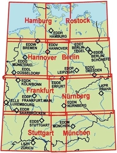 Das bewährte Kartenbild enthält eine Vielzahl geänderter Luftfahrtinformationen, insbesondere die in diesem Jahr neu festgelegten Zuständigkeitsbereiche, Rufzeichen und Frequenzen der Fluginformationsdienste im Raum München, Frankfurt und Berlin.