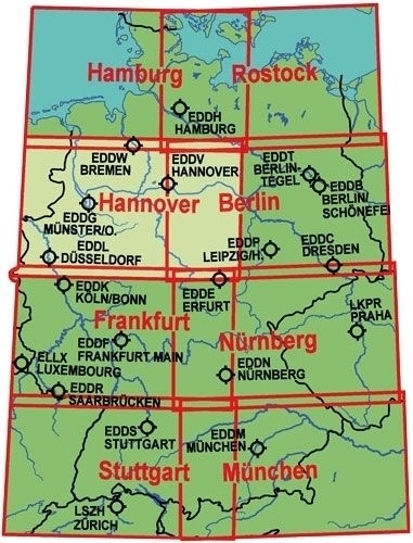 Das bewährte Kartenbild enthält eine Vielzahl geänderter Luftfahrtinformationen, insbesondere die in diesem Jahr neu festgelegten Zuständigkeitsbereiche, Rufzeichen und Frequenzen der Fluginformationsdienste im Raum München, Frankfurt und Berlin.