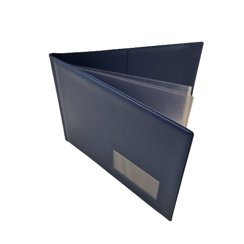 Blaue Kunststoffhülle mit 8 Klarsichthüllen innen