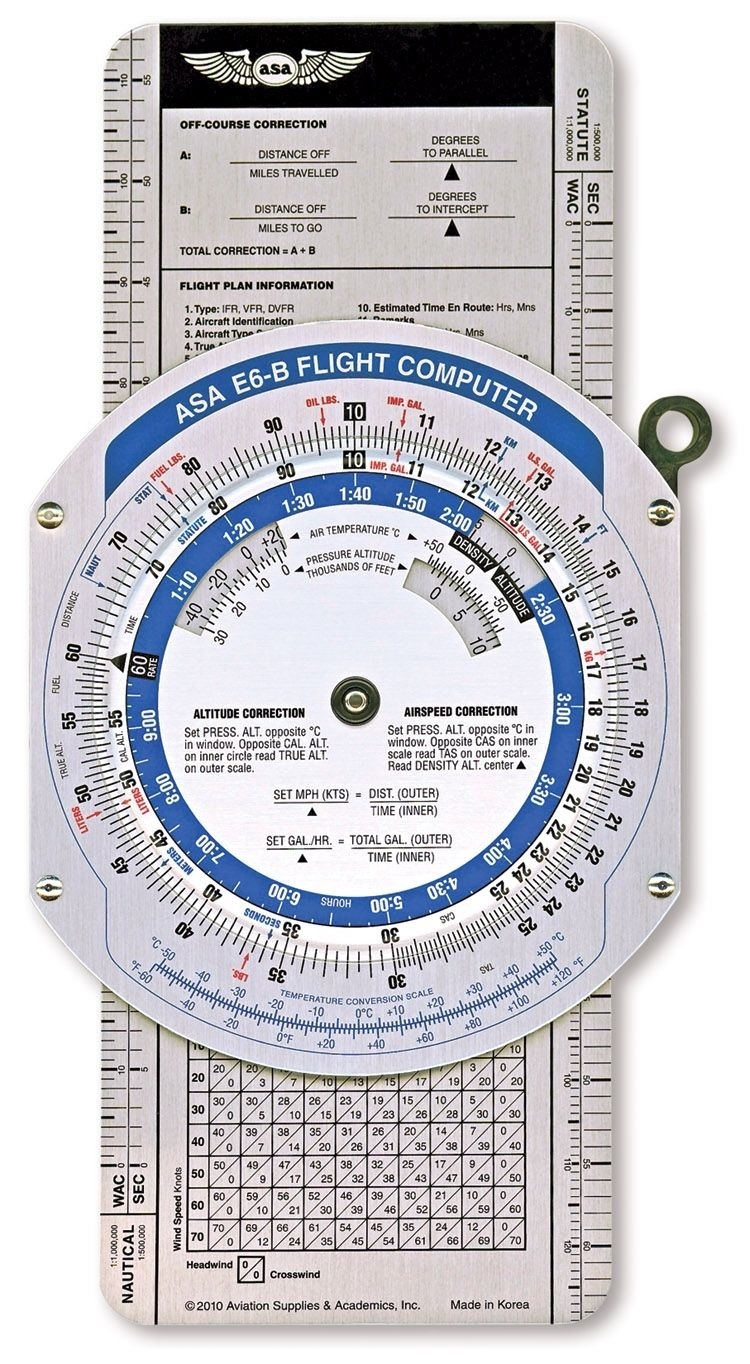 Auf der Vorderseite sind Zeit, Geschwindigkeit und Distanz, sowie Treibstoffverbrauch, Luft-Dichthöhe und alle anderen umgänglichen Berechnungen möglich.