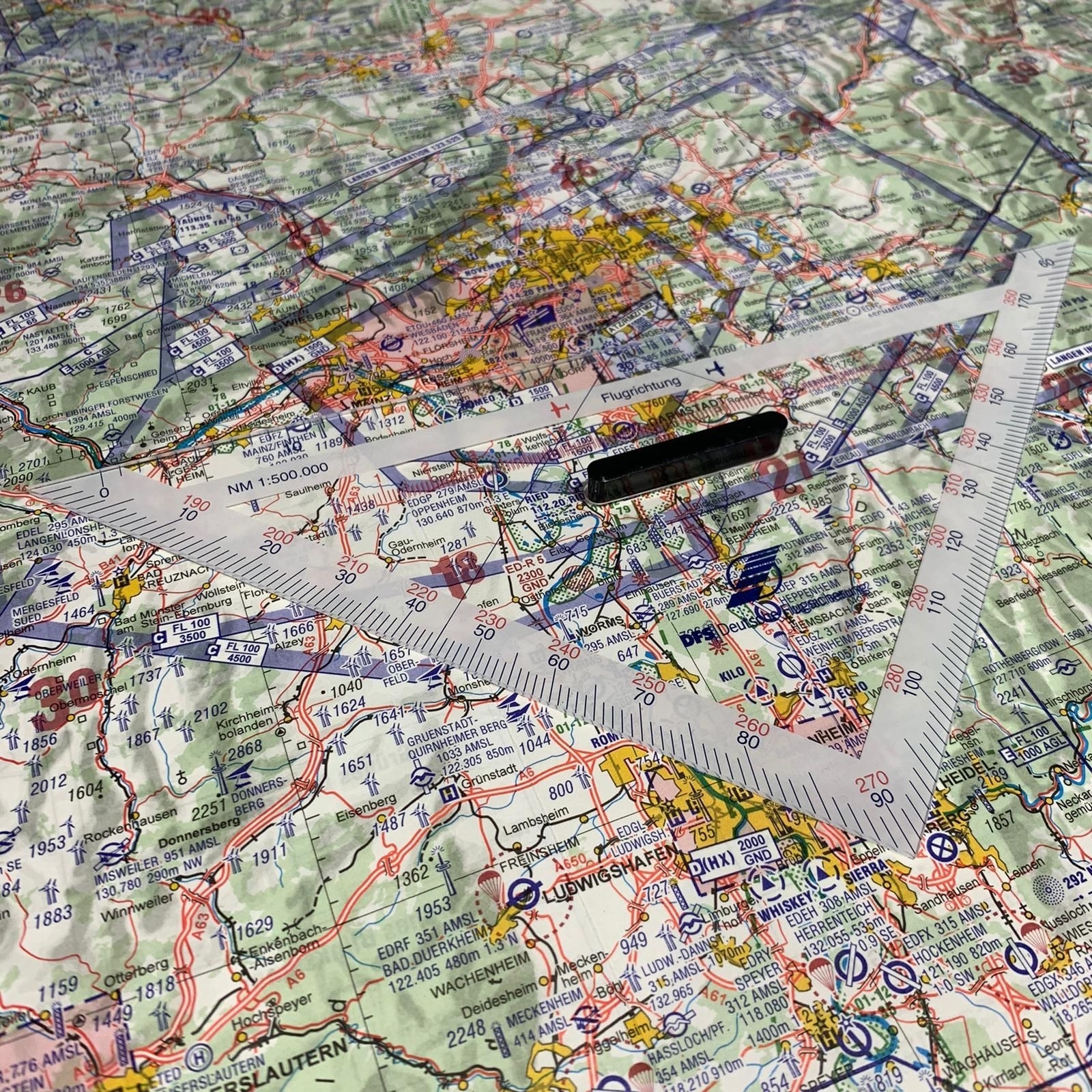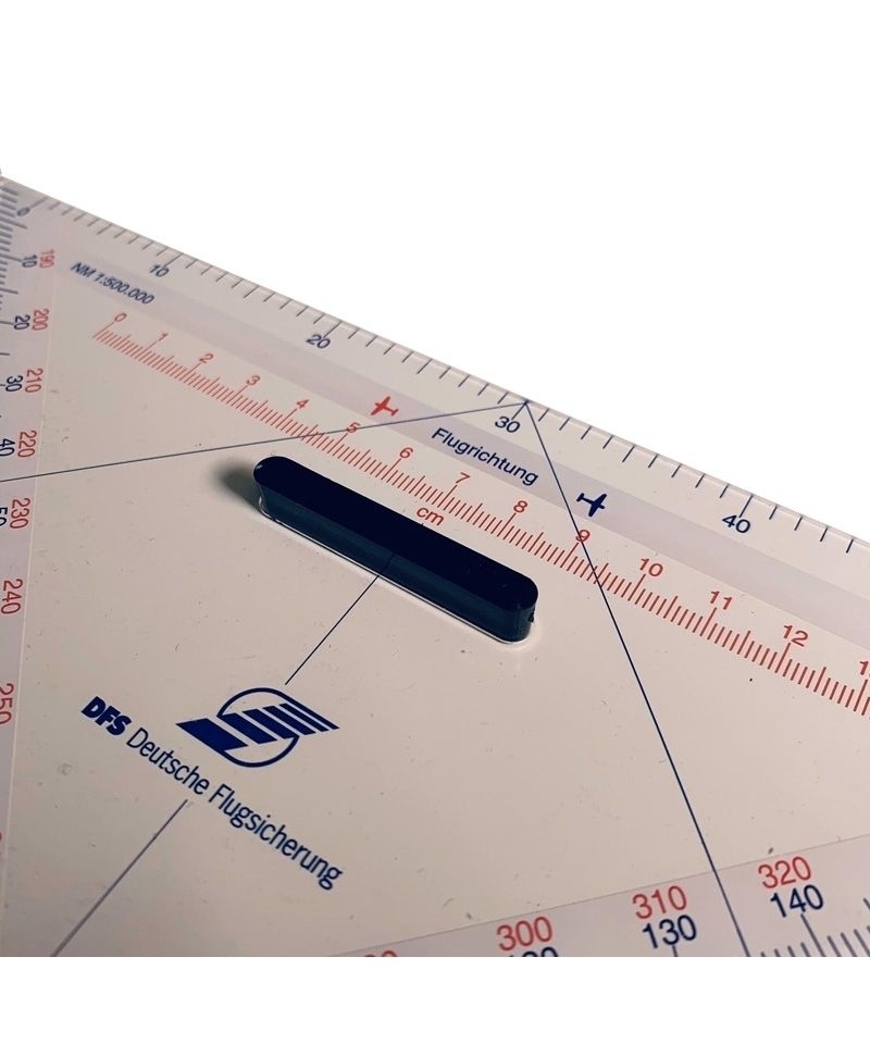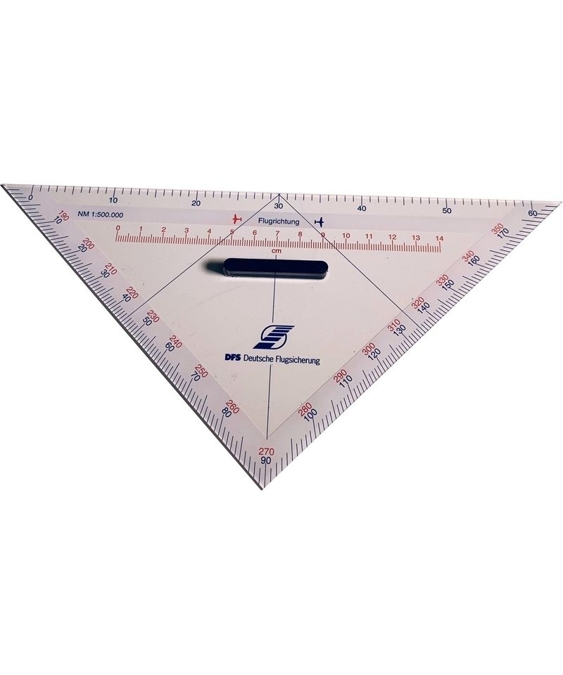 Das Kursdreieck aus glasklarem Kunststoff mit Griffleiste ermöglicht ein optimales Auslesen der Winkel. Es ist zweifarbig eingefärbt (blau: 0° bis 180°, rot: 180° bis 360°) und die Winkeleinteilung ist weiß hinterlegt.