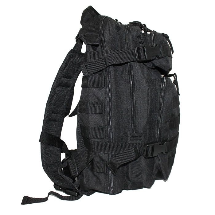 Multifunktionaler Rucksack, mit vielen Reißverschlusstaschen. Robustes Material. Ungefüllt flach zusammenlegbar.