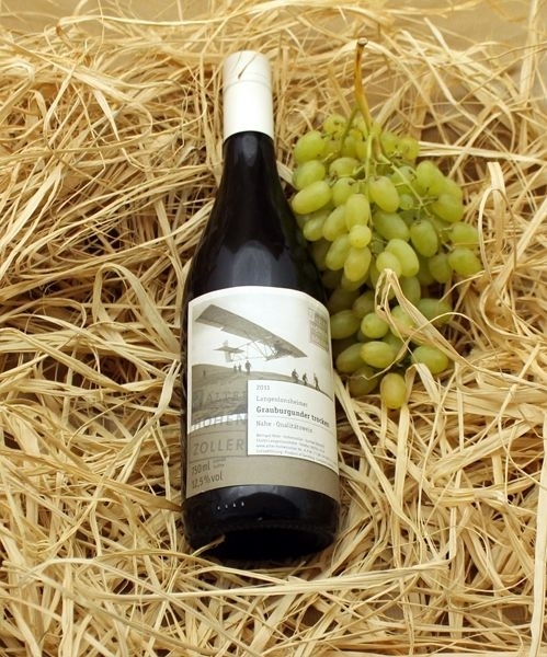 1 Flasche Grauburgunder trocken, mit historischem Flugzeug-Motiv