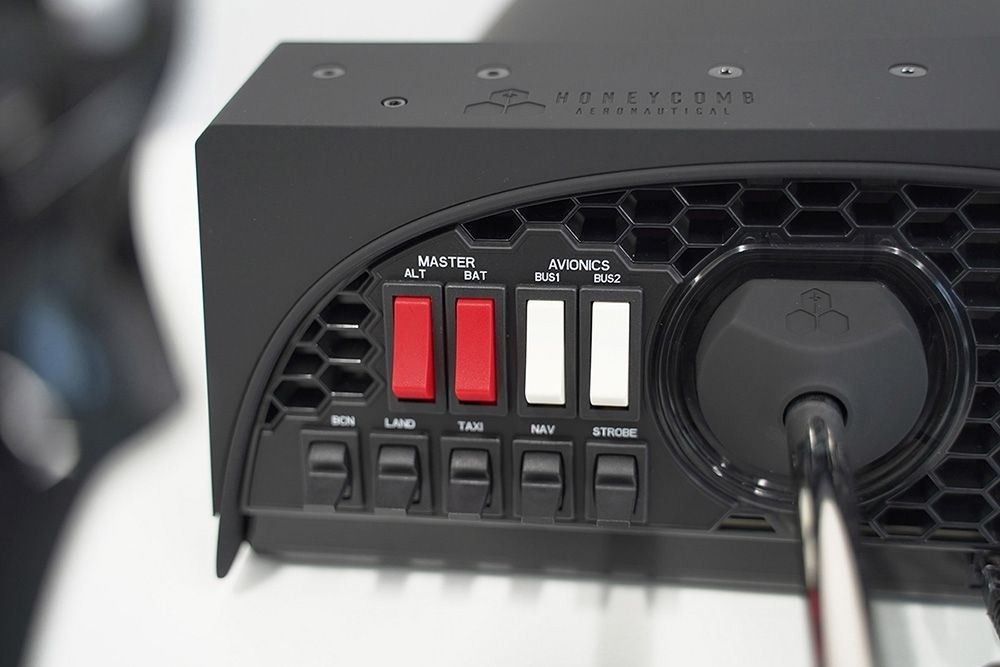 Das Yoke verfügt über ein Schalter-Panel mit Batterie- und Alternator-Schalter, Avionik-Hauptschalter sowie Lichtschaltern. Es ist mit einer roten LED-Hintergrundbeleuchtung ausgestattet, sodass es auch nachts gut bedienbar ist. Ebenfalls vorhanden ist ein Zündschalter, wie er bei Kolbenmotorflugzeugen üblich ist.