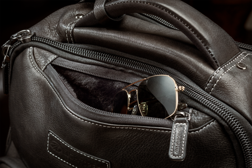 Der Rucksack wurde in Handarbeit aus vollnarbigem, geöltem, schwarzen, südamerikanischem Rindsleder gefertigt.