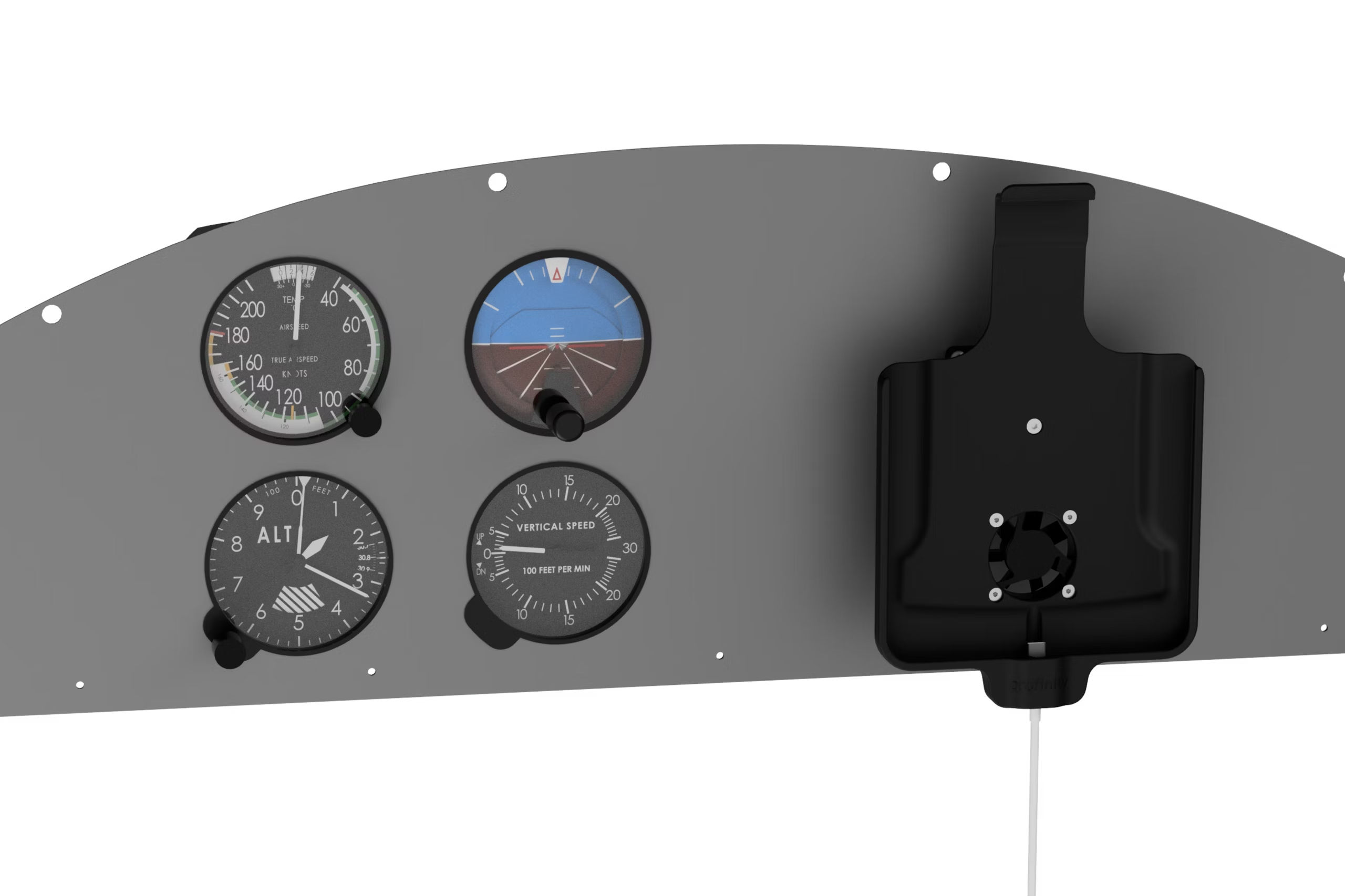 Drehbare Anbauhalterung mit aktiver Kühlung für das Instrumentenbrett eines Ultraleichtflugzeuges.