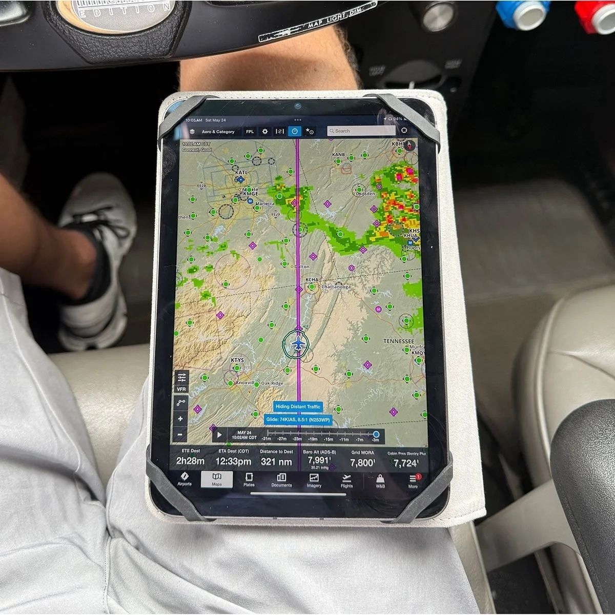 Gefertigt aus hochwertigem veganem Leder schützt es Ihr Tablet zuverlässig, wenn es nicht in Gebrauch ist, und dient gleichzeitig als stabile Schreibunterlage im Cockpit.